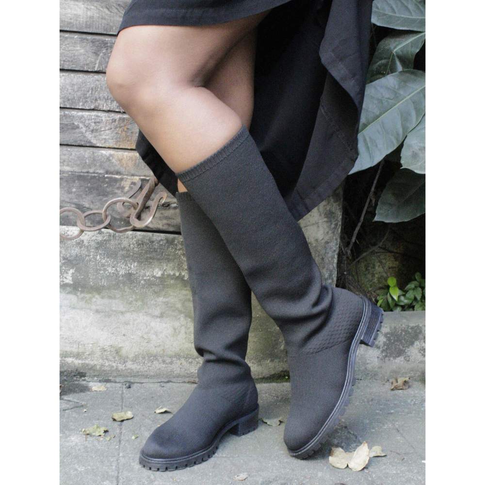 Bota Tricot, modelo com cabedal feito em tricot, sola baixa com micro laqueada pré-fabricada, modelo confortável e excelente para o dia-a-dia.