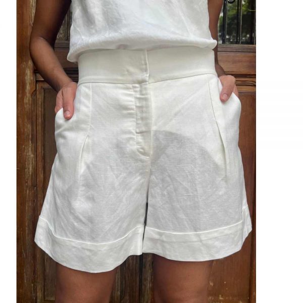 Confeccionado em linho, este Shorts possui caimento reto e barra clássica italiana.